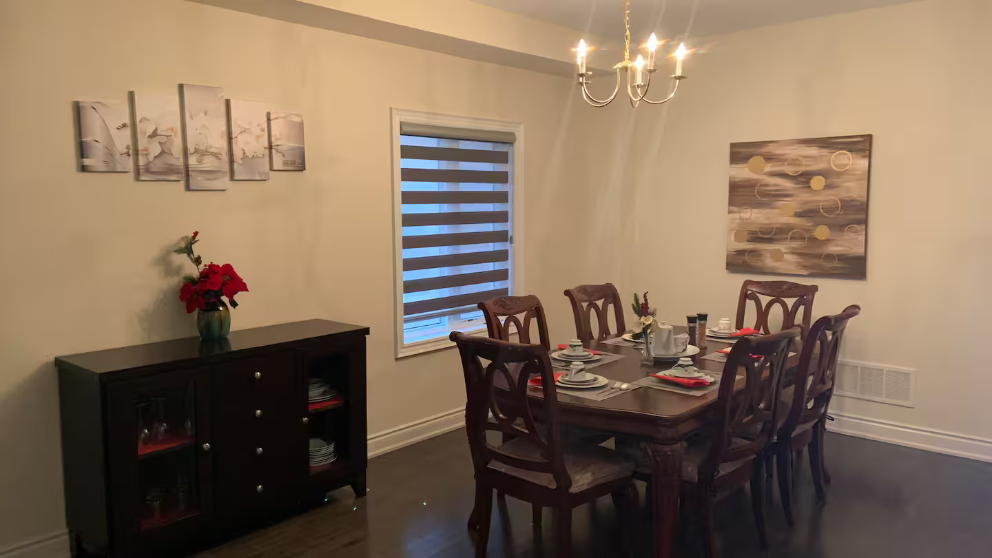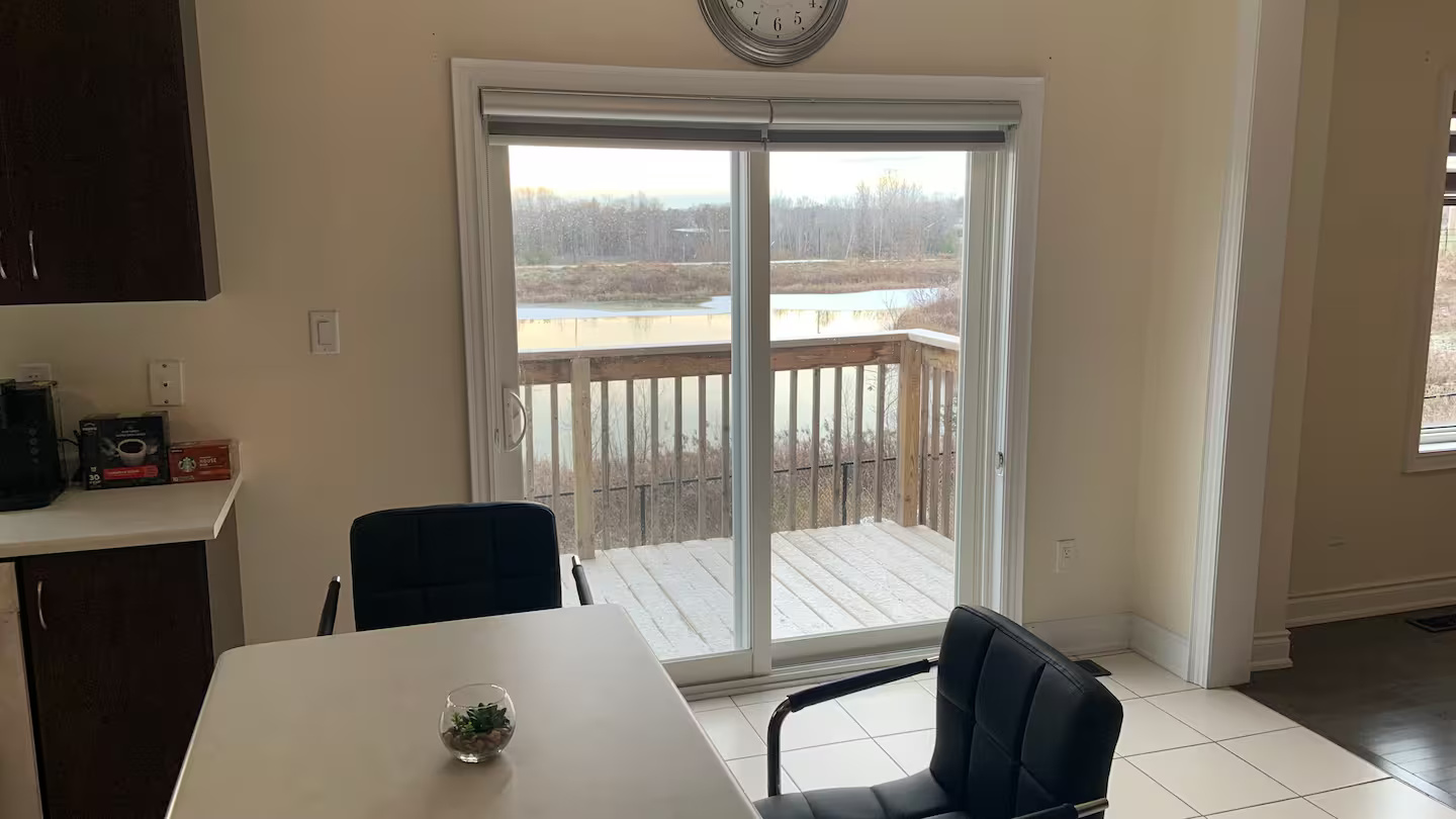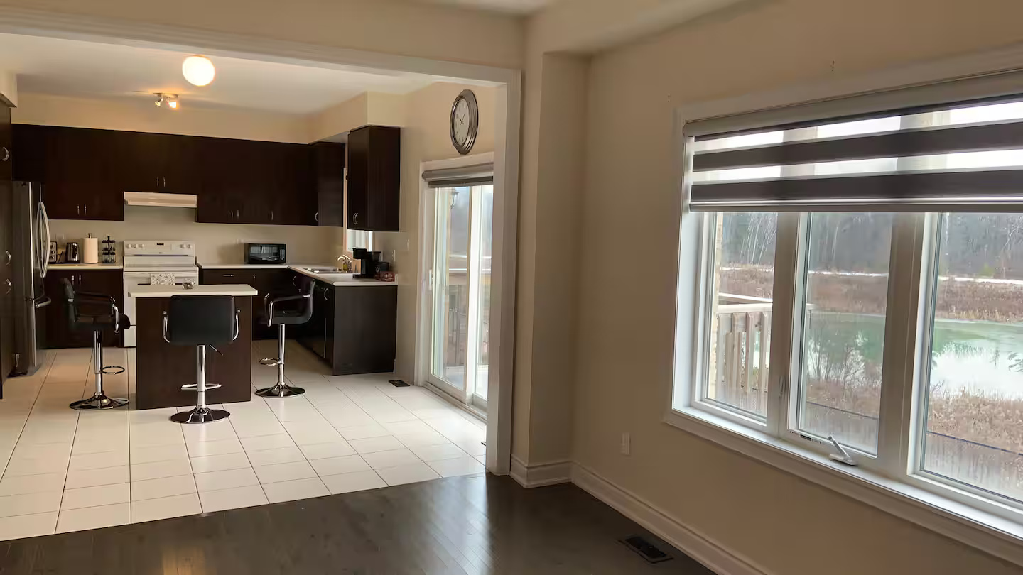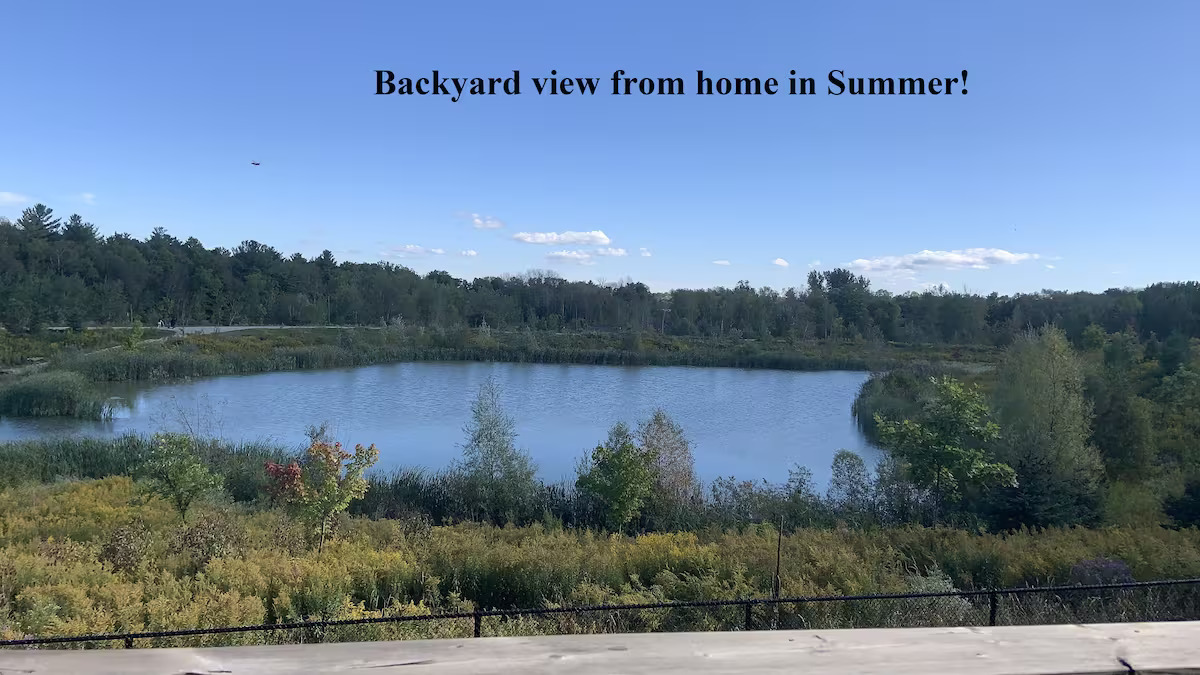 Enjoy the charming pond view from your rear deck, living room, bedrooms and basement. Spacious home with double door entrance foyer and front Juliette Balcony. 3210 Sq. Ft above ground with 9′ ceilings and hardwood and ceramic floors on main floor. Kitchen with island and built-in pantry and open on spacious family room, large living / dining room and front den/office room and main floor laundry room.